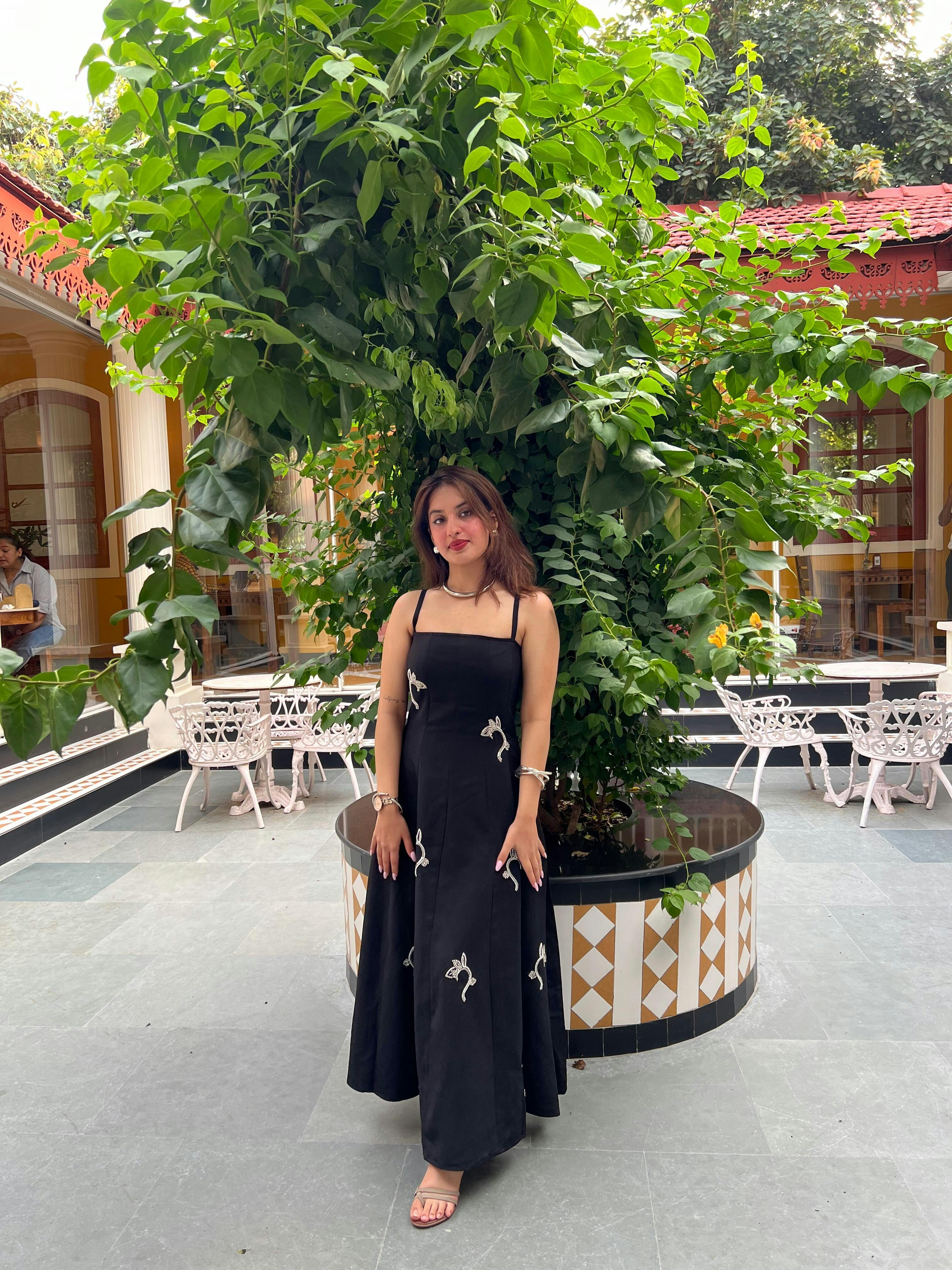 Designed to make a statement ,this sophisticated piece features intricate hand embellished detailing that catches the light with every step. The flattering midi length offers timeless elegance, while the tailored silhoutte enchances your natural shape. Crafted from premium fabric ,this dress is perfect for cocktail parties,formal dinners , or any occasion that calls for refined glamour.